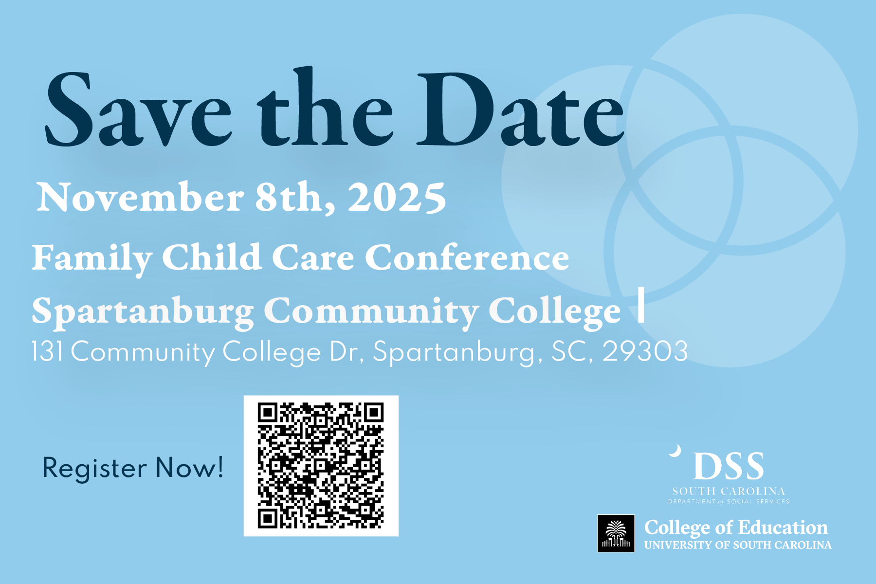 This conference will be in person only and held on Saturday, November 8th, 2025, at Spartanburg Community College, 131 Community College Dr, Spartanburg, SC, 29303.